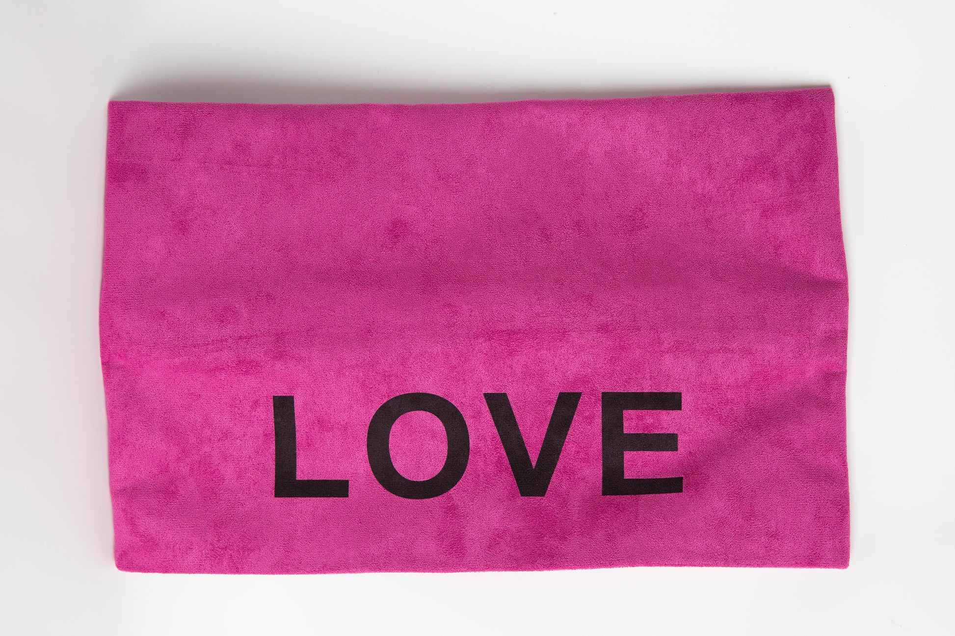 - Ultra-suede exterior with a laser-etched "LOVE" design