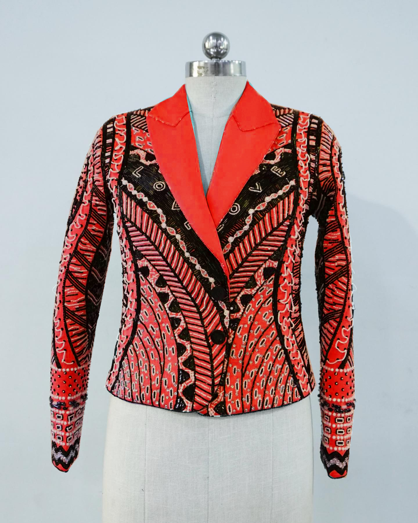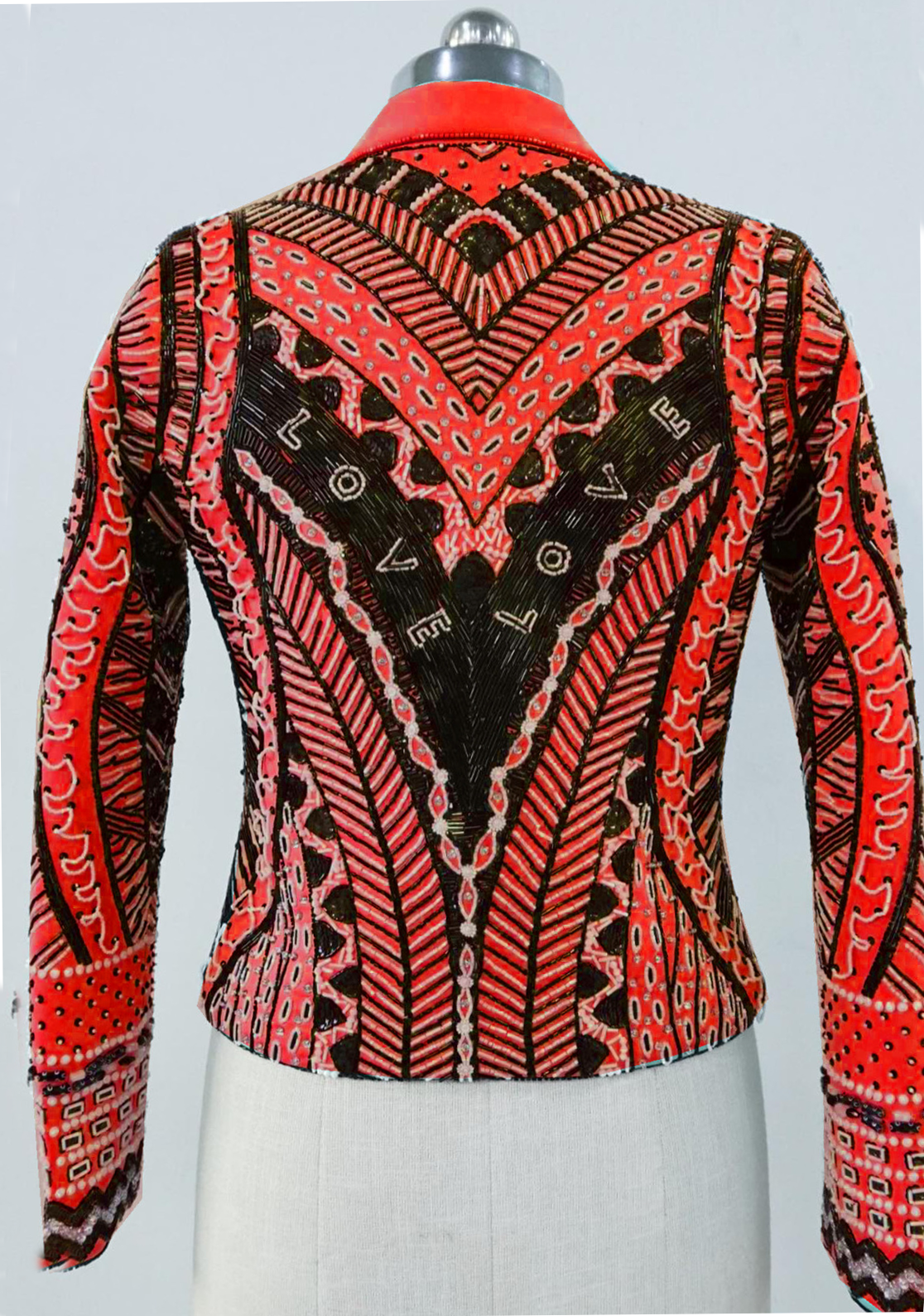 Artful Techniques: A masterful blend of techniques and beadwork is woven into the design, creating a symphony of artistry that elevates the jacket's visual appeal.